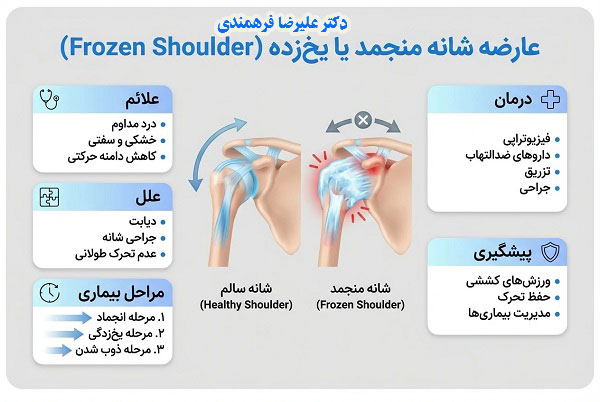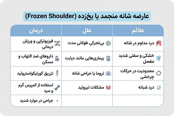 اینفوگرافی عارضه شانه منجمد یا یخ زده